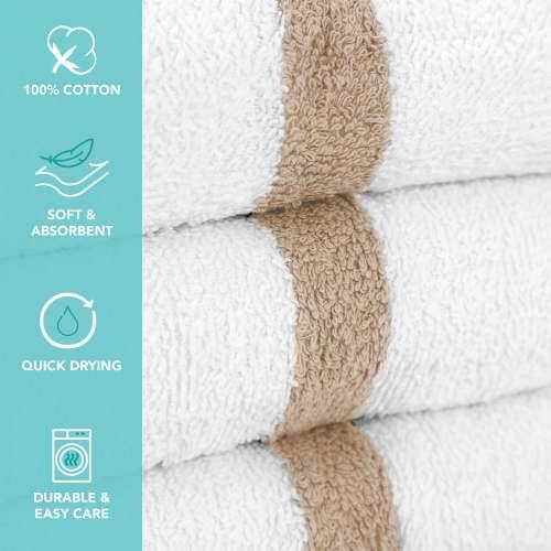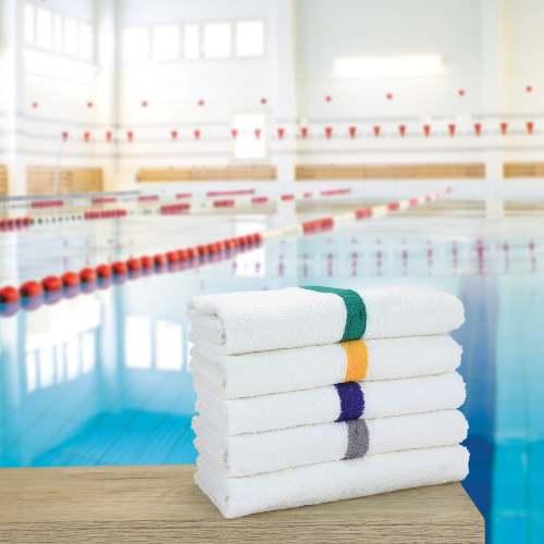 - POWER GYM HAND TOWEL VALUE PACKS: Pick up an economy set of 12 white 16" x 27" gym towels with a color center stripe. Our highly absorbent quick drying hand towels are available in blue, gold, green, beige, pink and grey stripe.