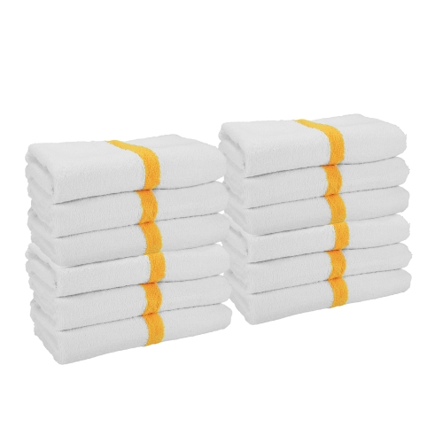 - POWER GYM BATH TOWEL VALUE PACKS: Pick up an economy set of 12 white 22" x 44" gym towels with a color center stripe. Our highly absorbent quick drying bath towels are available in plain white and blue, beige, pink, green, gold, and grey stripe.