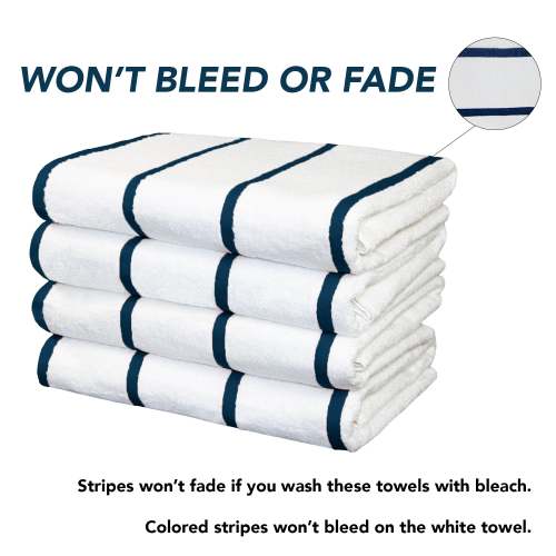 - TERRY TOWEL CARE INSTRUCTIONS: Our large beach towels can be machine washed in a regular cycle with like colors. The colored stripes won't bleed. Our large beach towel stays soft and looks vibrant after many washes.