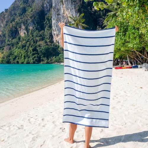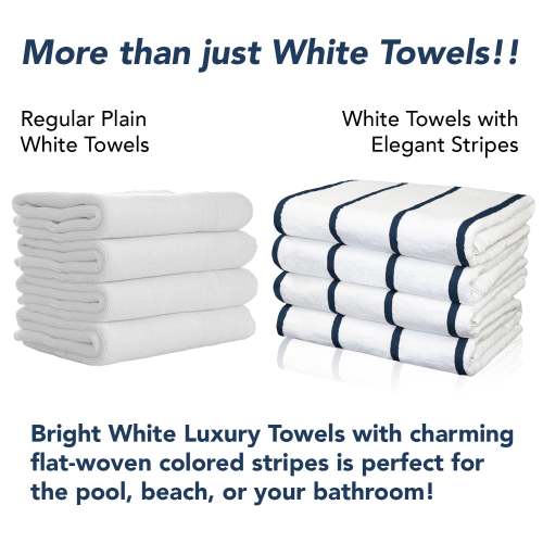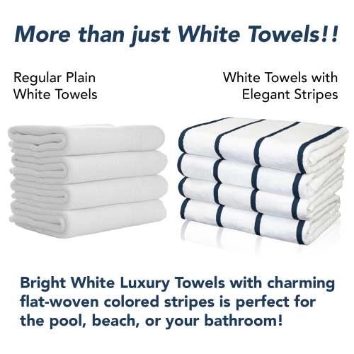 - PREMIUM QUALITY BEACH TOWELS: Our Las Rayas white plush towels are made from 100% ring spun cotton and feature beautiful flat-woven horizontal stripes.
