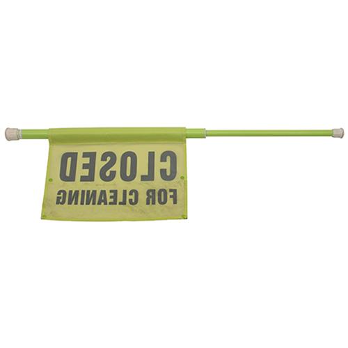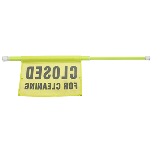 - Soft, synthetic fabric "Closed for Cleaning" sign is attached to pole and snaps closed for storage