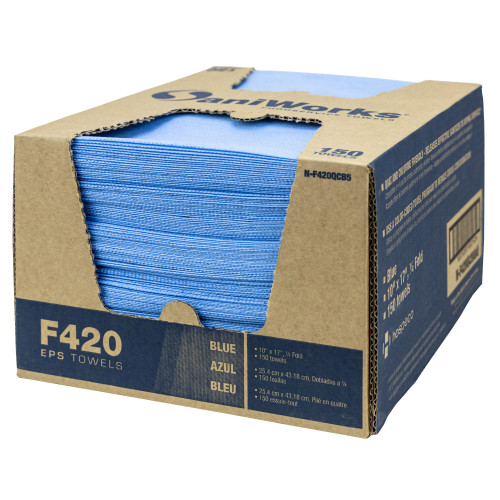 SaniWorks® EPS Towels,Blue, 10" x 17", 1/4 Fold, 150/cs