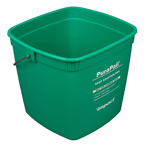 - Green buckets used for cleaning