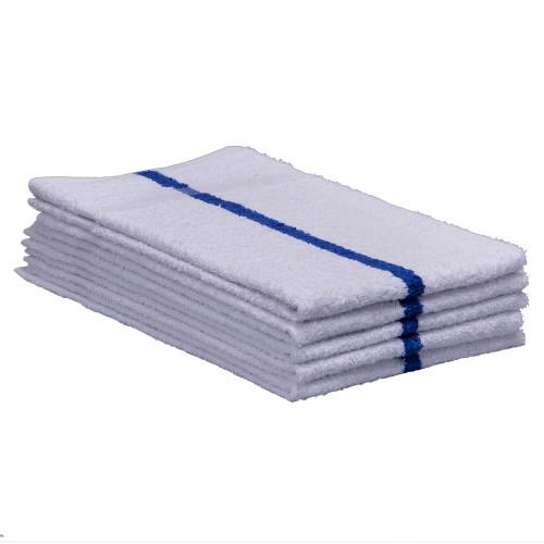 Wholesale Cotton Terry Medium Weight Towels 16x27 are available in plain white and white with a color stripe. Center stripe helps prevent loss and theft. These 100% cotton athletic towels are soft and absorbent, making them great gym, locker room and shower towels.