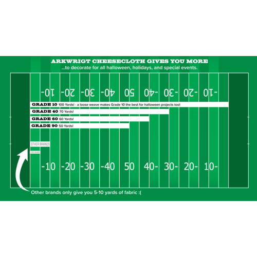 QUALITY: Arkwright Cheesecloth is made from natural food grade cotton. Made of 100% cotton, this bleached muslin fabric is durable, washable and reusable. It's absorbent, which makes it ideal for making hung curd, soy milk, cottage cheese and more DURABLE AND REUSABLE: This strong 100% natural cotton fabric can be washed and used again and again, which saves you money, and helps the environment too. When we talk about our 10 grade cheesecloth, one of the things that stand out is the durability and lifespan of the cloth. Not only is the cheesecloth strong, it also is reusable many times over. WASHABLE: Wash in the washing machine or by hand in the sink. Avoid detergents and fabric softeners. Use only mild detergent if necessary, and rinse thoroughly to remove any soap residue. If there are bits of curd sticking to the cloth, rinse with whey or white vinegar to help remove it DIMENSIONS: Extra Large Size Length is equal to 100 Yards and Weight is equal to 1 Yard. While most cheese cloths are only 2-5 Yards long, ours is 100 Yards long, which makes it most suitable for bulk use. Threads and Square is 20x12 inch USAGE: It is ideal for straining stocks as well as canning. Use it for basting or stuffing poultry. It is also useful when making soft cheeses that need a mesh wrap. Keep chicken or fish intact when poaching. Wrap a turkey or chicken when roasting. Squeeze the juice out of a lemon without letting the seeds fall into the juice. Or you can use it to wrap spices