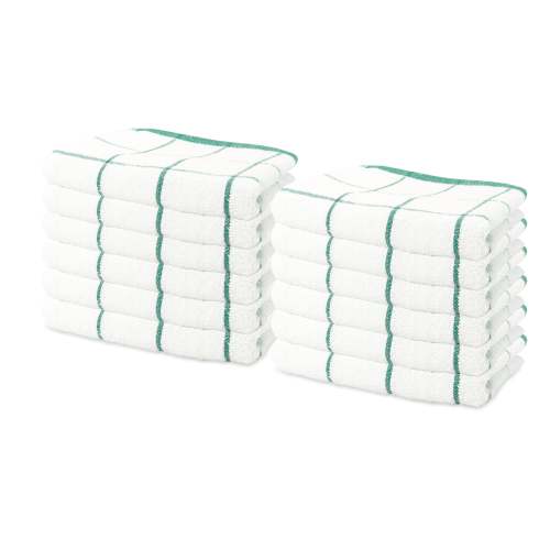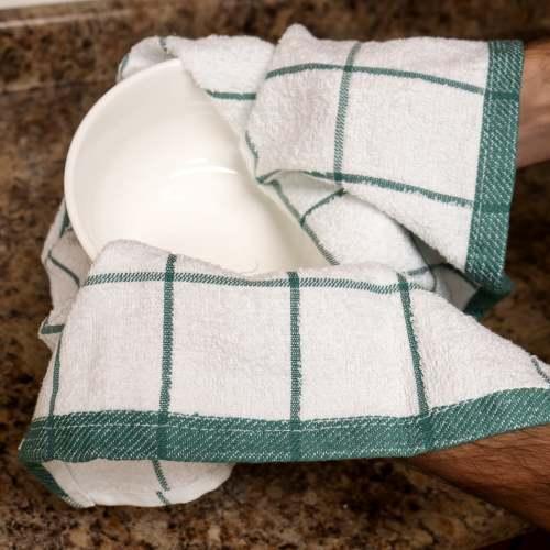 Pack: Bulk pack of 12 cotton kitchen towels have a large size ( 15 x 25 in.) and are ideal for frequent use in cooking, cleaning Quality: These dish towels are super absorbent and dry quick. Simple and elegant window pane design will match with any kitchen décor Lightweight: These terry dishcloths are a great alternative to disposable paper towels, and microfiber cloths, as these are more durable and will last longer Multi-purpose: This kitchen towel set is lint free and can be used as napkins, a cleaning cloth, for drying plates, bowls, as a tea towel set etc. Care: These dish cloths can be washed several times without wearing out. Machine Wash regular, Tumble Dry