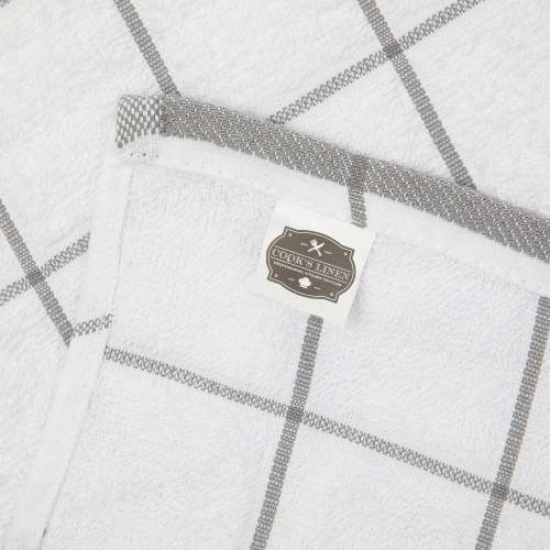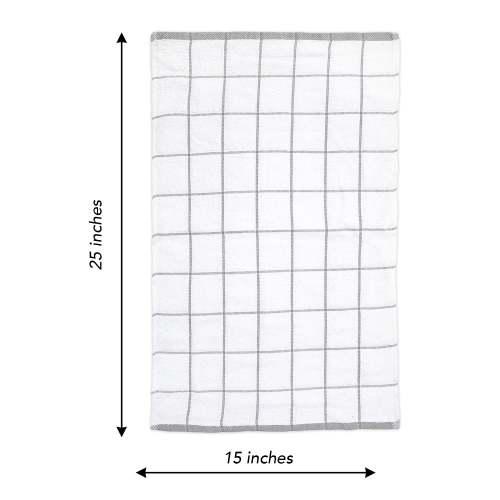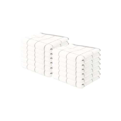 Pack: Bulk pack of 12 cotton kitchen towels have a large size ( 15 x 25 in.) and are ideal for frequent use in cooking, cleaning Quality: These dish towels are super absorbent and dry quick. Simple and elegant window pane design will match with any kitchen décor Lightweight: These terry dishcloths are a great alternative to disposable paper towels, and microfiber cloths, as these are more durable and will last longer Multi-purpose: This kitchen towel set is lint free and can be used as napkins, a cleaning cloth, for drying plates, bowls, as a tea towel set etc. Care: These dish cloths can be washed several times without wearing out. Machine Wash regular, Tumble Dry