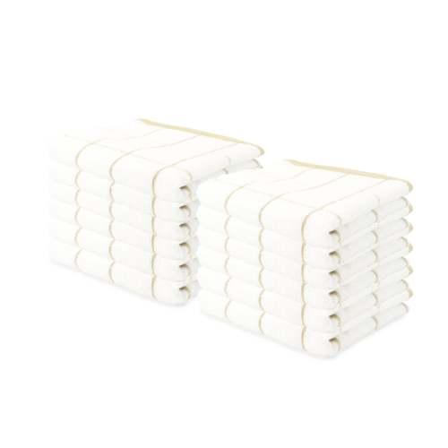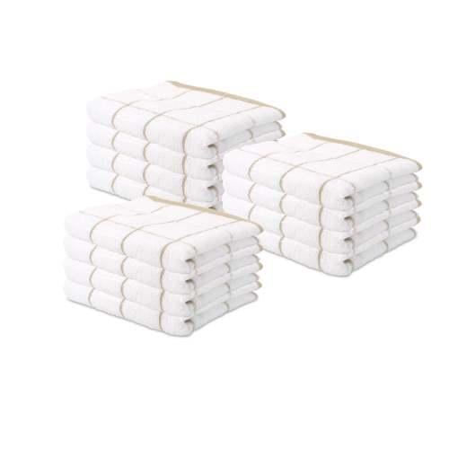Pack: Bulk pack of 12 cotton kitchen towels have a large size ( 15 x 25 in.) and are ideal for frequent use in cooking, cleaning Quality: These dish towels are super absorbent and dry quick. Simple and elegant window pane design will match with any kitchen décor Lightweight: These terry dishcloths are a great alternative to disposable paper towels, and microfiber cloths, as these are more durable and will last longer Multi-purpose: This kitchen towel set is lint free and can be used as napkins, a cleaning cloth, for drying plates, bowls, as a tea towel set etc. Care: These dish cloths can be washed several times without wearing out. Machine Wash regular, Tumble Dry
