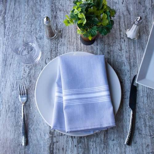 - SET OF 12: 12-pack of Professional and premium quality yarn-dyed striped spun poly napkins feel soft and elegant. These dinner cloth napkins get softer with subsequent washes without unraveling. The hemmed edges give the napkin strength and durability.