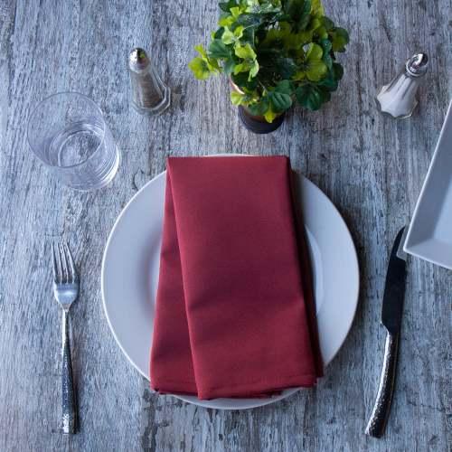 - QUALITY: Our Cloth Napkin collection is made from 100% spun Polyester, designed to feel soft. These napkins are commercial quality and restaurant style. Solid Napkins work great as hand towels, look perfect on the table or on placemats.