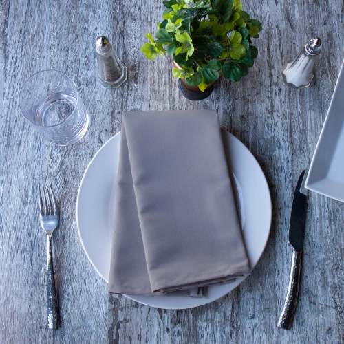 - QUALITY: Our Cloth Napkin collection is made from 100% spun Polyester, designed to feel soft. These napkins are commercial quality and restaurant style. Solid Napkins work great as hand towels, look perfect on the table or on placemats.