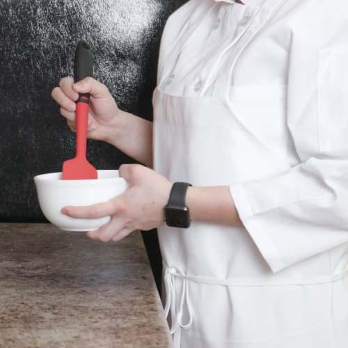 - QUALITY: Arkwright's Mariposa Aprons collection is made from 100% Spun Polyester, designed to feel soft. These professional aprons are touch, economical and cover large surface area to protect you from spills, splashes and stains.