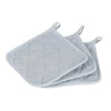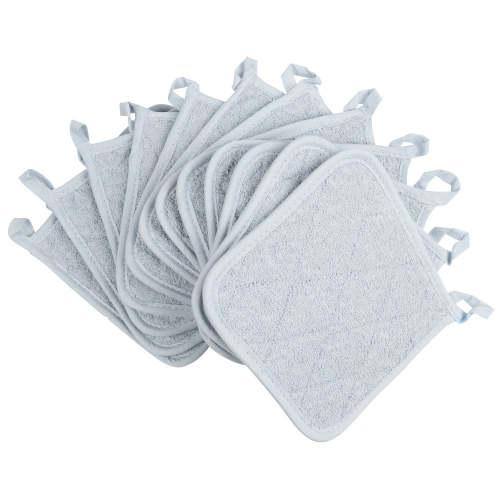 100% Cotton QUALITY: 12-pack of premium quality pot holder made up of 100% cotton (terry-looped), designed to feel soft and quilting allows for easy flexibility in these pot holders. A bulk pack of 12 make perfect for large-scale or frequent uses, offer durability and grip. A bulk pack is also more cost efficient. HEAT-RESISTANT: These pot holders will protect your hands from heat when removing dishes from the oven and hot pots from the stove, then rest your dishes on them like hot pads to protect kitchen surfaces. Do not use in a hot oven or over an open flame MULTIPURPOSE: These terry cotton oven mitts pot holders are ideal for hot pots, hot pan holder, microwave splatter guard, spoon rest, jar opener, trivet, and large coaster. Theses pot holders are perfect for business, baking, kitchen and cooking. SIZE: Our pot holders are perfect, large size - 7 x 7 in. with hemmed edges give the cloth strength and durability. It’s providing you perfect material with the benefits of heat resistant quality that you expect in your home. MACHINE WASHABLE: These pot holders are machine washable with cold water and tumble dry low (Do not bleach). Cotton makes it soft, light weight and easy to wash and can definitely hold up to multiple washes without thinning out or unraveling.
