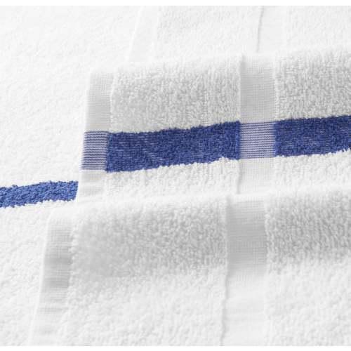 - SUPERIOR DESIGN & MATERIALS: Admiral hospitality towels boast superior construction and design. Soft premium ring spun cotton with a strong polyester ground creates an absorbent, durable institutional towel that outlasts the competition. Fast drying and resistance to wrinkling save time and money on labor and reduce machinery wear. A soft, sewn-in woven label is a thoughtful feature that won’t scratch the skin like some inferior towel labels. Sort our blue-stripe pool towels easily from whites.