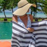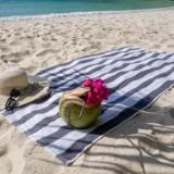 QUALITY TERRY TOWEL: Made from 20 Double 100% ring spun cotton, Cali Cabana beach & pool towels are soft, absorbent, and quick-drying. Our Cali Cabana pool towels are woven with yarn-dyed cotton so will not fade easily. CLASSIC CABANA TOWEL: It's a classic white terry beach towel with vibrant colored Cabana stripes. You can't go wrong with this Cali Cabana stripe beach towel at a pool or a beach or when traveling. BEACH TOWEL COLORS: Stand out with our bright and vibrant color options. The beach towel pack of 4 comes in four colors (High Rise Gray, Nectarine Orange, Skuba Blue and Florida Keys Green). These Cabana beach towels make a great bath towel set for your bathroom or guest room. NEW FOR 2021: Our best-selling beach and pool cabana towels will be available in black, red, and pink stripes! MULTIPURPOSE CABANA TOWEL: Originally developed as a hotel pool towel, our Cabana striped beach towel pack make terrific home bath towels, hotel towels, resort beach towels, Airbnb bed and breakfast bath towels, VRBO vacation rental, gym towels, and hotel spa towels. BEACH TOWEL CARE INSTRUCTIONS: Cabana stripe beach towel are Machine Washable with like colors. Do not bleach. Tumble dry low. Always wash new Cabana beach towels before use as some lint may be generated. Care for your striped beach towels properly, and your large pool towels will look new and fresh even after multiples washes.