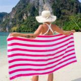- CLASSIC CABANA TOWEL: It's a classic white terry towel with vibrant colored cabana stripes. You can't go wrong with this cabana stripe beach towel at a pool or a beach or when traveling.