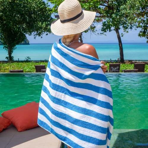 - MULTIPURPOSE CABANA TOWEL: Originally developed as a hotel pool towel, Our striped cabana beach towel pack make terrific home bath towels, hotel towels, resort beach towels, Airbnb bed and breakfast bath towels, VRBO vacation rental, gym towels, and hotel