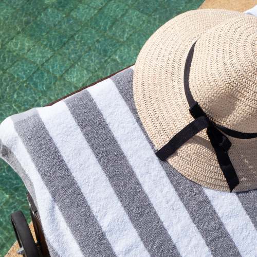 - MULTIPURPOSE CABANA TOWEL: Originally developed as a hotel pool towel, Our striped cabana beach towel pack make terrific home bath towels, hotel towels, resort beach towels, Airbnb bed and breakfast bath towels, VRBO vacation rental, gym towels, and hotel spa towels.