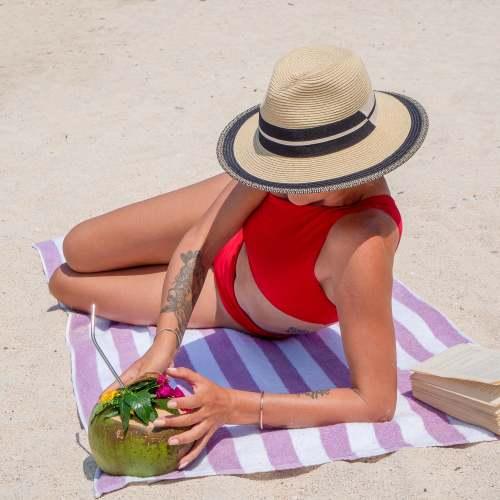 - OVERSIZED POOL TOWEL: Generously sized at 30 x 70 inches, this large beach towel features an oversized surface area for drying. Enjoy the tropical island ambiance with our most popular beach towel, the California Cabana Towel. A perfect fit for any pool c