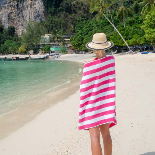 - MULTIPURPOSE CABANA TOWEL: Originally developed as a hotel pool towel, Our striped cabana beach towel pack make terrific home bath towels, hotel towels, resort beach towels, Airbnb bed and breakfast bath towels, VRBO vacation rental, gym towels, and hotel