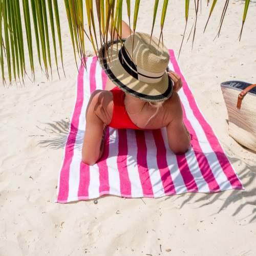 - UNIQUE CABANA TOWELS: California Cabana Towels feature bright white pile with colorful yarn-dyed stripes in vibrant trending colors. Yarn dyeing ensures that the color stripes in this bold beach towel won't run or fade in the sun. This highly popular caba
