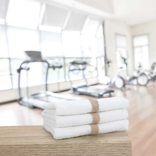 - POWER GYM HAND TOWEL VALUE PACKS: Pick up an economy set of 12 white 16" x 27" gym towels with a color center stripe. Our highly absorbent quick drying hand towels are available in blue, gold, green, beige, pink and grey stripe.