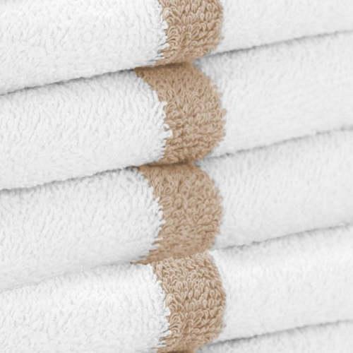 POWER GYM HAND TOWEL: Arkwright's quick-drying hand towel collection is made of 100% cotton. These top-rated small light bathroom hand towels were initially designed as commercial gym hand towels, and are popular hotel resort hand towels. Complete your towel set with our power hand towels. POWER GYM HAND TOWEL VALUE PACKS: Pick up an economy set of 12 white 16" x 27" gym towels with a color center stripe. Our highly absorbent quick drying hand towels are available in blue, gold, green, beige, pink and grey stripe. A BETTER HAND TOWEL DESIGN: Arkwright's Power hand towels are made from virgin fiber 12/S open-end yarn. Standard absorbent gym towels are made from inferior blended (virgin & reclaimed) fiber yarn. There's a visible difference in the structure of our white hand towels. Power gym towel's loop pile is low, uniform, and tight, with more loops-per-square-inch than competitive towels. MULTI-PURPOSE HAND TOWEL: Our Arkwright's white quick dry towel makes a terrific gym bathroom towel, VRBO guest hand towel, or hotel pool towel. Use as an oversized fingertip towel in powder rooms, or to dry hair as salon towels. CARING FOR YOUR POWER BATHROOM HAND & GYM TOWEL: These Power gym hand towels are machine washable on gentle cycle. Do not use bleach. Tumble dry low. Do not iron. Our soft, lightweight gym towels are easy to wash and can hold up to multiple washes without thinning or unraveling.