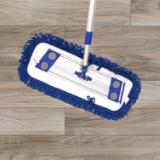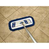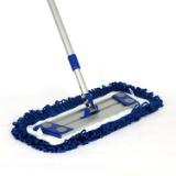 Fringed microfiber dust mops with hook and loop backing make daily dusting more efficient and effective. The unique microfiber yarn attracts and traps dust and fine particles better than traditional materials, while the secure hook and loop system ensures quick attachment and removal from the frame. This 18” dust mop is ideal for janitorial professionals, as it fits in smaller areas for effective cleaning. Blue is preferred for cleaning hard surface floors in hallways, gymnasiums, food courts, and common areas, when used for color-coded cleaning systems.