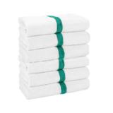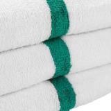 - POWER GYM BATH TOWEL VALUE PACKS: Pick up an economy set of 12 white 22" x 44" gym towels with a color center stripe. Our highly absorbent quick drying bath towels are available in plain white and blue, beige, pink, green, gold, and grey stripe.