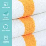 POWER GYM HAND TOWEL: Arkwright's quick-drying hand towel collection is made of 100% cotton. These top-rated small light bathroom hand towels were initially designed as commercial gym hand towels, and are popular hotel resort hand towels. Complete your towel set with our power hand towels. POWER GYM HAND TOWEL VALUE PACKS: Pick up an economy set of 12 white 16" x 27" gym towels with a color center stripe. Our highly absorbent quick drying hand towels are available in blue, gold, green, beige, pink and grey stripe. A BETTER HAND TOWEL DESIGN: Arkwright's Power hand towels are made from virgin fiber 12/S open-end yarn. Standard absorbent gym towels are made from inferior blended (virgin & reclaimed) fiber yarn. There's a visible difference in the structure of our white hand towels. Power gym towel's loop pile is low, uniform, and tight, with more loops-per-square-inch than competitive towels. MULTI-PURPOSE HAND TOWEL: Our Arkwright's white quick dry towel makes a terrific gym bathroom towel, VRBO guest hand towel, or hotel pool towel. Use as an oversized fingertip towel in powder rooms, or to dry hair as salon towels. CARING FOR YOUR POWER BATHROOM HAND & GYM TOWEL: These Power gym hand towels are machine washable on gentle cycle. Do not use bleach. Tumble dry low. Do not iron. Our soft, lightweight gym towels are easy to wash and can hold up to multiple washes without thinning or unraveling.