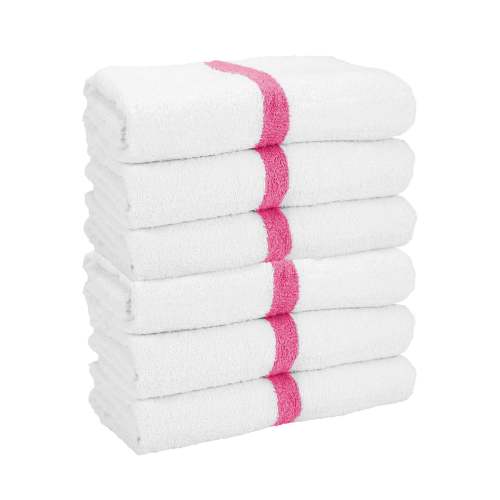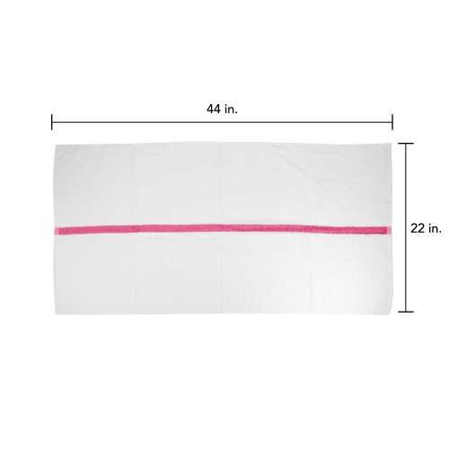 - POWER GYM BATH TOWEL VALUE PACKS: Pick up an economy set of 12 white 22" x 44" gym towels with a color center stripe. Our highly absorbent quick drying bath towels are available in plain white and blue, beige, pink, green, gold, and grey stripe.