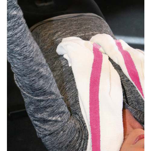 POWER GYM BATH TOWEL: Our quick-drying bath towel collection is made of 100% cotton. These top-rated small light bathroom towels were initially designed as commercial gym bath towels, and are popular hotel pool towels. Complete your towel set with our power bath towels for the bathroom. POWER GYM BATH TOWEL VALUE PACKS: Pick up an economy set of 12 white 22" x 44" gym towels with a color center stripe. Our highly absorbent quick drying bath towels are available in plain white and blue, beige, pink, green, gold, and grey stripe. A BETTER BATH TOWEL DESIGN: Our Power bath towels are made from virgin fiber 12/S open-end yarn. Standard absorbent gym towels are made from inferior blended (virgin & reclaimed) fiber yarn. There's a visible difference in the structure of our white bath towels. Power gym towel's loop pile is low, uniform, and tight, with more loops-per-square-inch than competitive towels. MULTI-PURPOSE BATH TOWEL: Our Our white quick dry towel makes a terrific gym bathroom towel, VRBO guest bath towel, or hotel pool towel. Use as an oversized hand towel in powder rooms, or to dry hair as salon towels. CARING FOR YOUR POWER BATHROOM & GYM TOWEL: These white power bath towels are machine washable on gentle cycle. Do not use bleach. Tumble dry low. Do not iron. Our soft, lightweight gym towels are easy to wash and can hold up to multiple washes without thinning or unraveling.