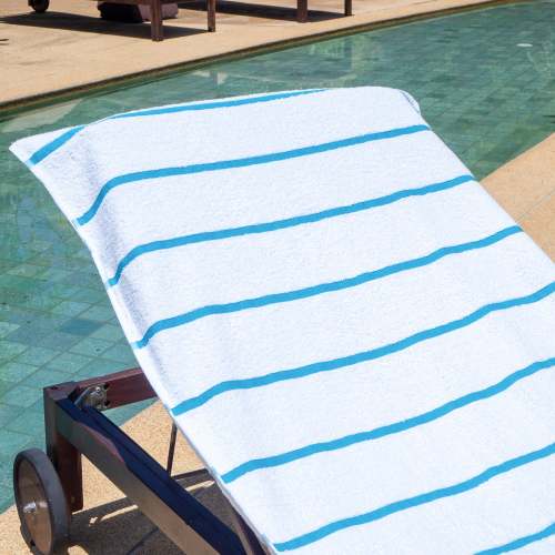 STYLISH OUTDOOR CHAIR COVERS: These Las Rayas pool chair covers are made with soft 100% premium cotton interwoven with polyester flat woven stripes for a unique look at the beach or pool. Our terry towel pool chair covers match our Las Rayas beach towels. OVERSIZED CHAISE LOUNGE COVER WITH 8" POCKET: Are you fed up when your pool towel blows off your pool chair? Our terry towel lounge chair cover is extra-large (30"x85"). The 8" terry pocket fits most beach and pool chairs so your towel will never blow away. ABSORBENT LOUNGE CHAIR COVER: Made with the same 100% ring spin cotton pile as Las Rayas bath and beach towels, Our terry lounge chair cover towel wicks water fast and dries quickly so that you can just relax after a refreshing swim. BEACH CHAIR COVERS ARE BETTER IN PAIRS: Pool goers will be jealous of your matching soft white terry chaise lounge covers. Buy a couple of two packs for the family and stake your claim to the best pool chairs. LOUNGE CHAIR TOWEL COVER WASHING INSTRUCTIONS: These oversized beach chair covers can be washed under regular machine wash and should be air-dried (preferably). Alternatively, you can dry these on the low setting in the drier. Do not use bleach or fabric softener.