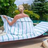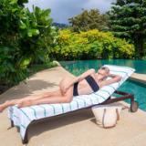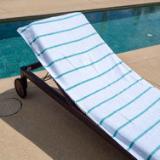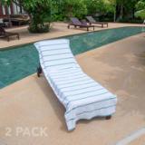 STYLISH OUTDOOR CHAIR COVERS: These Las Rayas pool chair covers are made with soft 100% premium cotton interwoven with polyester flat woven stripes for a unique look at the beach or pool. Our terry towel pool chair covers match our Las Rayas beach towels. OVERSIZED CHAISE LOUNGE COVER WITH 8" POCKET: Are you fed up when your pool towel blows off your pool chair? Our terry towel lounge chair cover is extra-large (30"x85"). The 8" terry pocket fits most beach and pool chairs so your towel will never blow away. ABSORBENT LOUNGE CHAIR COVER: Made with the same 100% ring spin cotton pile as Las Rayas bath and beach towels, Our terry lounge chair cover towel wicks water fast and dries quickly so that you can just relax after a refreshing swim. BEACH CHAIR COVERS ARE BETTER IN PAIRS: Pool goers will be jealous of your matching soft white terry chaise lounge covers. Buy a couple of two packs for the family and stake your claim to the best pool chairs. LOUNGE CHAIR TOWEL COVER WASHING INSTRUCTIONS: These oversized beach chair covers can be washed under regular machine wash and should be air-dried (preferably). Alternatively, you can dry these on the low setting in the drier. Do not use bleach or fabric softener.