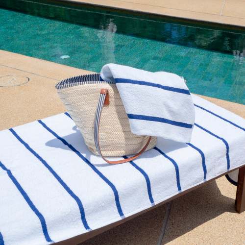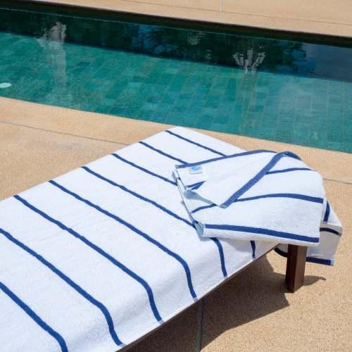 STYLISH OUTDOOR CHAIR COVERS: These Las Rayas pool chair covers are made with soft 100% premium cotton interwoven with polyester flat woven stripes for a unique look at the beach or pool. Our terry towel pool chair covers match our Las Rayas beach towels. OVERSIZED CHAISE LOUNGE COVER WITH 8" POCKET: Are you fed up when your pool towel blows off your pool chair? Our terry towel lounge chair cover is extra-large (30"x85"). The 8" terry pocket fits most beach and pool chairs so your towel will never blow away. ABSORBENT LOUNGE CHAIR COVER: Made with the same 100% ring spin cotton pile as Las Rayas bath and beach towels, Our terry lounge chair cover towel wicks water fast and dries quickly so that you can just relax after a refreshing swim. BEACH CHAIR COVERS ARE BETTER IN PAIRS: Pool goers will be jealous of your matching soft white terry chaise lounge covers. Buy a couple of two packs for the family and stake your claim to the best pool chairs. LOUNGE CHAIR TOWEL COVER WASHING INSTRUCTIONS: These oversized beach chair covers can be washed under regular machine wash and should be air-dried (preferably). Alternatively, you can dry these on the low setting in the drier. Do not use bleach or fabric softener.