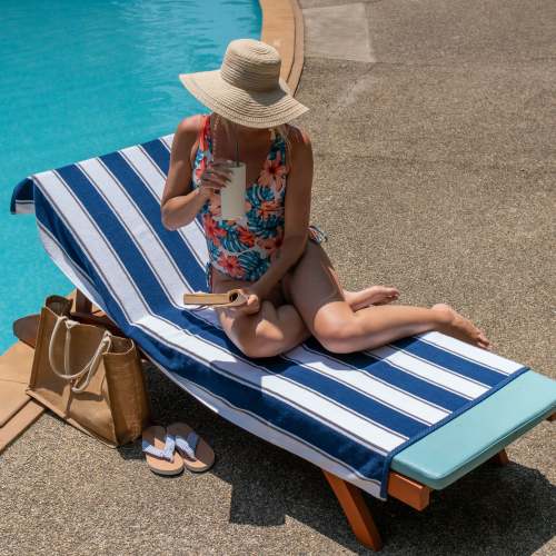 - THICK POOL TOWELS COLORS: Aston & Arden large towels come in classic pinstripe designs. The evergreen color varieties will remain vibrant and chic - Blue/Green, Green/Blue, Green/Navy, Navy/Red, Navy/Yellow, Yellow/Navy. Buy complementary colored beach towel patterns like Blue/Green and Green/Blue to turn heads at the pool.