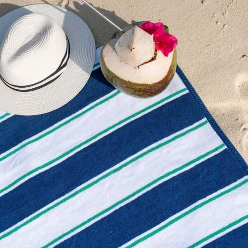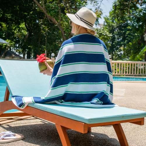 - THICK POOL TOWELS COLORS: Aston & Arden large towels come in classic pinstripe designs. The evergreen color varieties will remain vibrant and chic - Blue/Green, Green/Blue, Green/Navy, Navy/Red, Navy/Yellow, Yellow/Navy. Buy complementary colored beach towel patterns like Blue/Green and Green/Blue to turn heads at the pool.