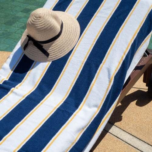 - THICK POOL TOWELS COLORS: Aston & Arden large towels come in classic pinstripe designs. The evergreen color varieties will remain vibrant and chic - Blue/Green, Green/Blue, Green/Navy, Navy/Red, Navy/Yellow, Yellow/Navy. Buy complementary colored beach towel patterns like Blue/Green and Green/Blue to turn heads at the pool.