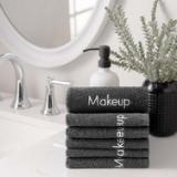 - ELEGANT TOUCH TO ANY HOME – These chic face towels for women feature the word “makeup” embroidered on the plush, black towel. They’re the perfect addition to any bathroom, and even make a beautiful touch to your rental home, Airbnb and much more.