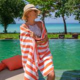 The best-selling California Cabana Towel comes in ten stripe colors and is made of soft ring spun 100% cotton for a beach towel that is sure to become a favorite. At 30x70 inches, this beach towel is bigger than most on the market. Yarn-dyed processing creates a towel that resists fading from sun damage and produces bright, vibrant colors that last years. The California Cabana collection is available in sets of four and captures the true essence of oceanfront style. Our cabana towels are designed to stay soft and colorful for years with easy care and low lint.