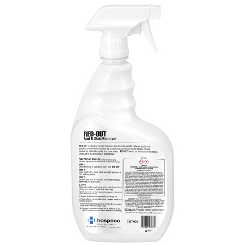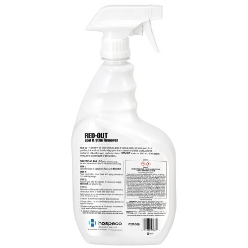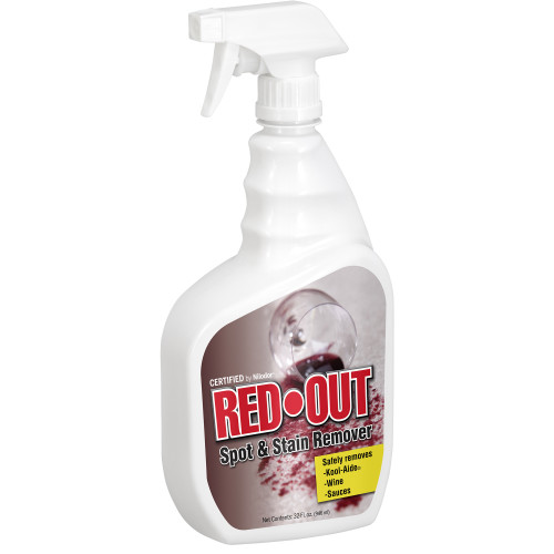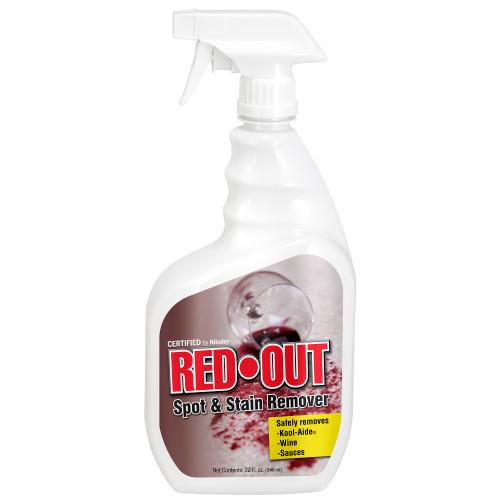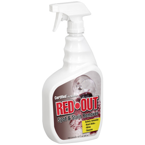 - Red-Out works on fresh and dried stains without the use of bleach or phosphates.
