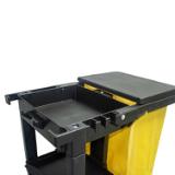 - The cart's front area is specifically designed to securely hold a standard 32-gallon trash can, providing convenient waste disposal capabilities