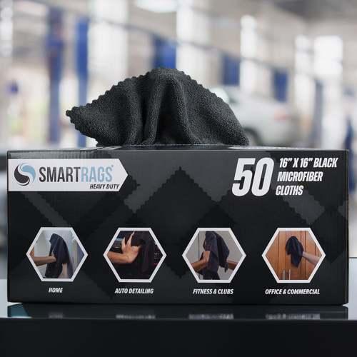 SPECIFICATIONS: One box contains 50 microfiber cloths (16 x 16 in.) that have precision, seamless cut edges for efficient cleaning SAVINGS: These rags have been engineered and designed (center-pull dispenser box) to be conveneint and affordable. They can be reused and laundered 100s of times thus making for great savings. Don't waste money on disposable paper towels and rags. MULTIPLE ENVIRONMENTS: SmartRags are less expensive than regular microfiber cloths so are ideal for utility carts, Industrial and Automotive shops, Office environments, Corporate Supply Rooms, Healthcare facilities and households. All-PURPOSE: Suited for both, dry and wet cleaning. Removes heavy soils, grime while also giving a streak-free, lint-free polish and finish. CARE INSTRUCTIONS: Machine wash cold, air dry for best results (or tumble dry low). Do not use bleach.