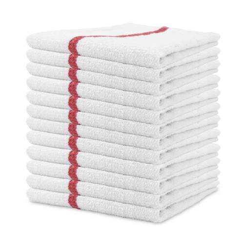 - QUALITY KITCHEN TOWELS: Our professional-grade restaurant white bar mop towels with color center stripes are made of cotton and are absorbent and quick drying. Kitchen terry towels are heavier than most dish rags out there.