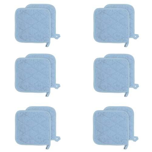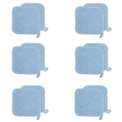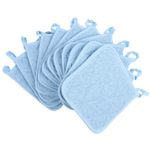100% CottonQUALITY: 12-pack of premium quality pot holder made up of 100% cotton (terry-looped), designed to feel soft and quilting allows for easy flexibility in these pot holders. A bulk pack of 12 make perfect for large-scale or frequent uses, offer durability and grip. A bulk pack is also more cost efficient.HEAT-RESISTANT: These pot holders will protect your hands from heat when removing dishes from the oven and hot pots from the stove, then rest your dishes on them like hot pads to protect kitchen surfaces. Do not use in a hot oven or over an open flameMULTIPURPOSE: These terry cotton oven mitts pot holders are ideal for hot pots, hot pan holder, microwave splatter guard, spoon rest, jar opener, trivet, and large coaster. Theses pot holders are perfect for business, baking, kitchen and cooking.SIZE: Our pot holders are perfect, large size - 7 x 7 in. with hemmed edges give the cloth strength and durability. It’s providing you perfect material with the benefits of heat resistant quality that you expect in your home.MACHINE WASHABLE: These pot holders are machine washable with cold water and tumble dry low (Do not bleach). Cotton makes it soft, light weight and easy to wash and can definitely hold up to multiple washes without thinning out or unraveling.