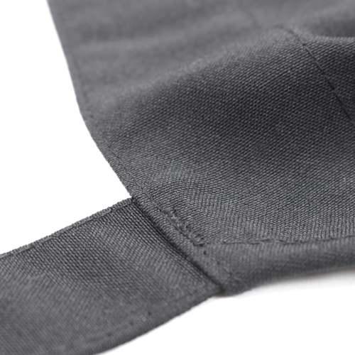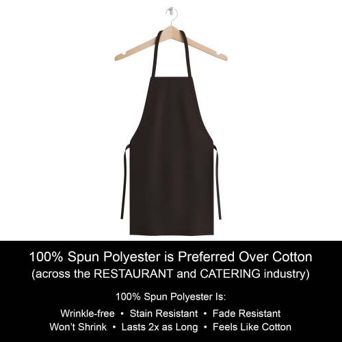 - FEATURES: Our spun poly aprons look neat and have a large surface area to cover you from spills, splashes and stains. Bib aprons have hemmed edges for toughness and durability. Elastic string and adjustable ties make it fit for any body type and is comfortable to use.