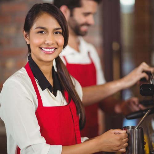 - QUALITY: Our Mariposa Aprons collection is made from 100% Spun Polyester, designed to feel soft. These professional aprons are touch, economical and cover large surface area to protect you from spills, splashes and stains.
