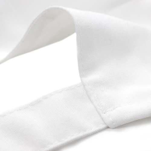 - FEATURES: Our spun poly aprons look neat and have a large surface area to cover you from spills, splashes and stains. Bib aprons have hemmed edges for toughness and durability. Elastic string and adjustable ties make it fit for any body type and is comfortable to use.