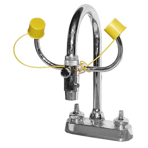 The Bradley® Faucet Mounted Eyewash is a dependable, ANSI‑compliant emergency eyewash solution ideal for laboratories and commercial facilities where quick access to eye irrigation is critical. Designed to mount easily to both standard and gooseneck faucets (faucet not included), this compact unit features a chrome‑plated brass spray head assembly with twin soft‑flow eyewash heads and high‑visibility yellow protective covers to help keep the spray nozzles clean and ready for use. Its integral flow control ensures a safe, steady water stream across typical supply pressures, while the included universal identification sign and inspection tag support proper safety practices. Engineered to meet ANSI/ISEA Z358.1 standards for emergency fixtures, this faucet‑mounted eyewash offers reliable performance and peace of mind in environments where eye exposure to irritants or contaminants is a risk.