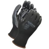 - This work glove is made of a black coated polyester shell of stretch knit material that conforms to the hand for a snug, comfortable fit that enhances dexterity and reduces hand fatigue